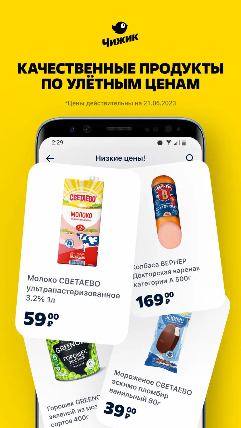 Чижик: Быстрая доставка продуктов по низким ценам Чижик — это современное приложение для заказа продуктов и товаров для дома с быстрой доставкой по доступным ценам.